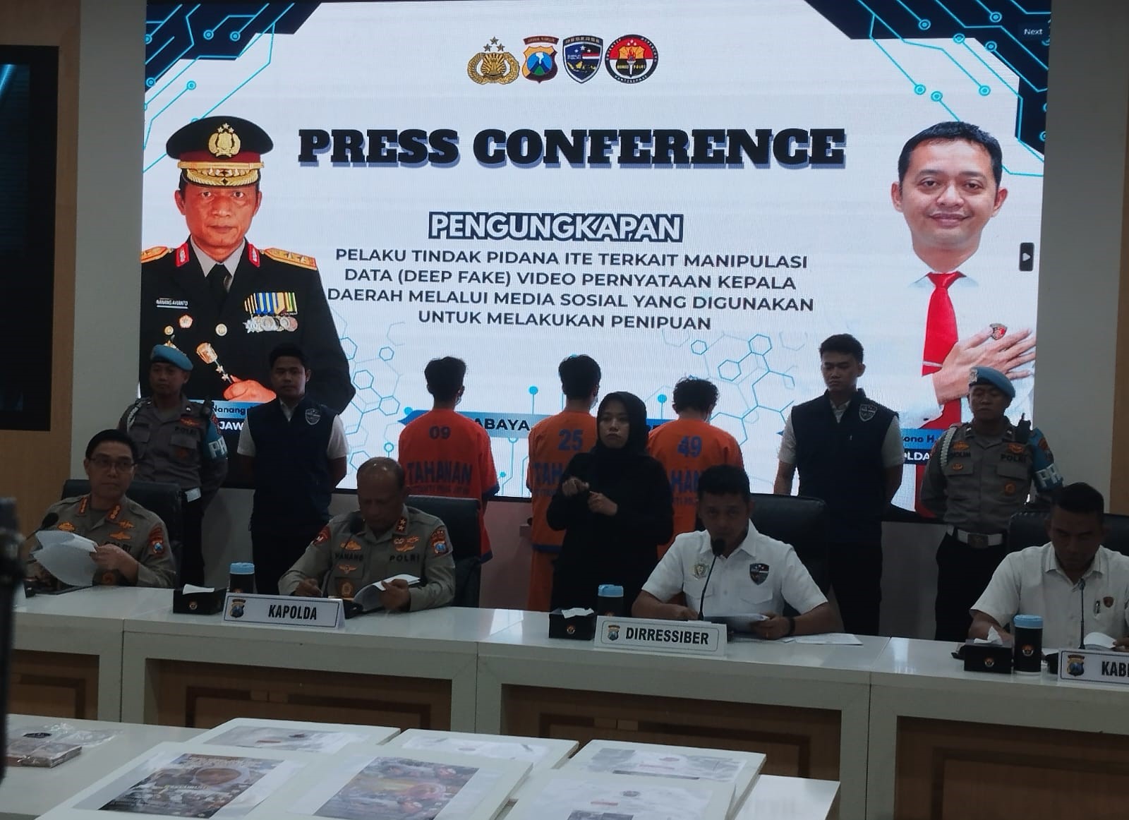 SURABAYA (tribratanews.jatim.polri.go.id) – DitresSiber Polda Jatim tangkap komplotan pelaku tindak pidana ITE terkait manipulasi data (Deep Fake) video pernyataan Kepala Daerah melalui media sosial yang digunakan untuk melakukan penipuan.