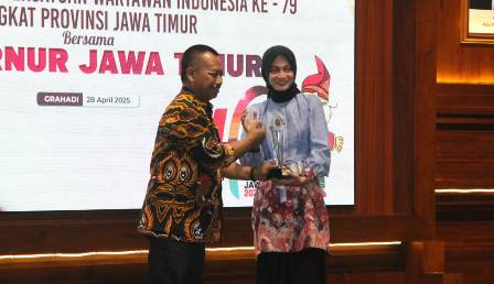 SURABAYA (tribratanews.jatim.polri.go.id) – Puncak resepsi Hari Pers Nasional 2025 dan HUT ke 79 PWI tingkat Jawa Timur disertai memberikan penghargaan PWI Jatim Awards kepada sejumlah tokoh atau pejabat publik yang berprestasi dan berdedikasi pada bidang atau profesinya yang berlangsung di Gedung Negara Grahadi, Surabaya Jawa Timur, Senin (28/4/2025)